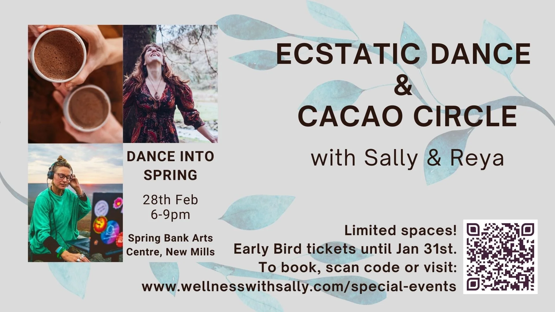 Reya is the founder of Let’s Dance Sheffield and Ecstatic Dance Peak District, and co-founder of Ecstatic Dance Sheffield. An experienced facilitator and DJ, as well as massage therapist and yoga teacher, she brings a love of movement, music and community to every gathering. Her work is inspired by nature, embodied practices and her studies with the Mayan Yokotan Cacao traditions in Mexico.